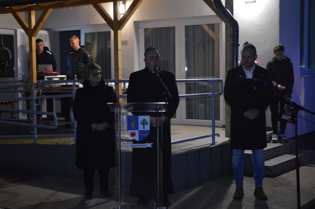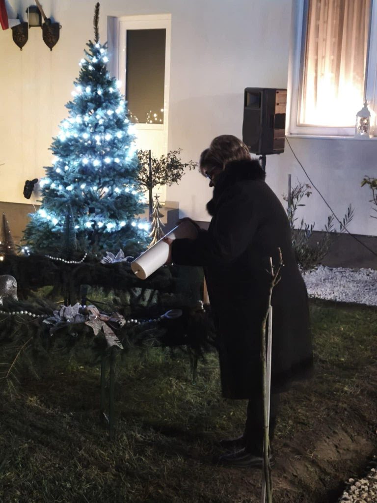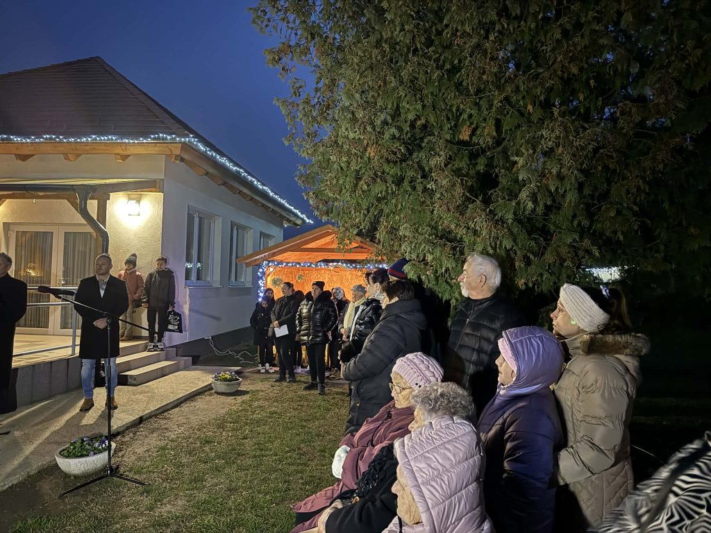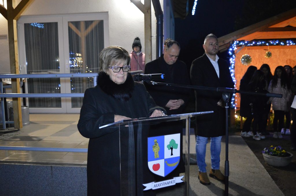Benkő Zsigmondné alpolgármester üdvözlő szavaiban a hit, a béke, a szeretet, az emberség és az összefogás fontosságát hangsúlyozta. Köszönetet mondott Nagy Beatrixnak a falu szépítésében történő közreműködéséért, a program szervezéséért és társainak a csodálatos fények megvalósításáért.