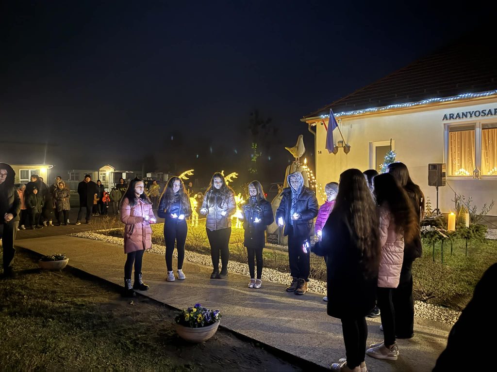 Az Aranyosapáti Általános Iskola tanulói által bemutatott versek, karácsonyi dalok tették még ünnepélyesebbé az élményt. Felkészítő pedagógus: Benkőné Pető Ágnes és Szakszonné Csicsák Erzsébet. Benkő Zsigmondné meggyújtotta az első gyertyát, amely a hit lángját hordozza. Hitet abban, hogy a sötétség után mindig eljön a fény, hitet abban, hogy a szívünkben élő szeretet képes melegséget vinni a hideg napokba.
