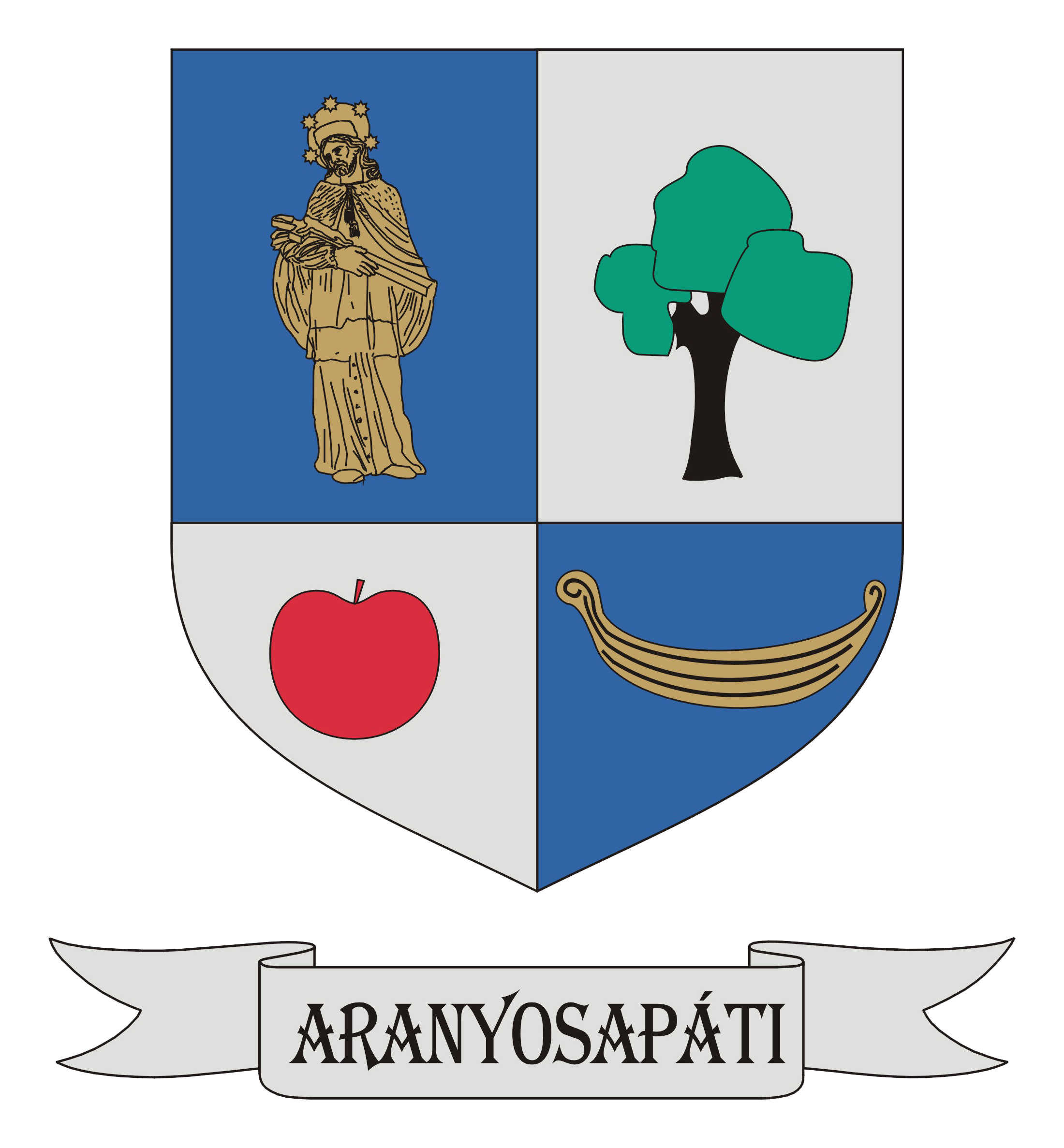 A címer csücskös talpú, négy részre osztott címerpajzson alapszik, mely váltakozva kék és ezüstszínezetű, illetve mázú. Az első negyedben kék alapon aranymázzal Nepomuki Szent János alakja látható (formáját a településen található műemlék kápolna szobráról kapta), aki a vízi átkelések, a hajózás védő szentje, így mivel a település mindig fontos átkelőhely volt, joggal szerepel az első helyen. A második negyedben ezüstmáz alapon feketével és zölddel megrajzolt lombos fa látható, ami a környéken található erdőségekre, valamint az erdőgazdálkodásra, vadászatra utal. A harmadik negyedben ezüstmáz alapon vörös színű alma jelenti az évtizedek óta egyik legfontosabb termesztett növény és a legfontosabb megélhetési forrást is. Mellette az utolsó negyedben kék alapszínen aranymázazású heraldikai csónak található. A szín és a forma a vízre, vízi átkelésre, a Tiszára utal, amely évszázadok óta meghatározó jelentőséggel bír a település, illetve azt megelőzően az alkotó községek életében. A címerpajzs alatt ezüstszalag található, felirata: Aranyosapáti.